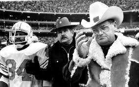 ‘There’s a tendency among some football writers to diminish Oail Andrew “Bum” Phillips as a caricature with a 10-gallon hat and cowboy boots, spewing pithy one-liners, homespun homilies and tobacco juice,’ wrote Chris Wesseling. ‘There was a knowing wink in his persona, which was variously described as that of a “square-dance caller” and a “refugee from the Grand Ole Opry.”